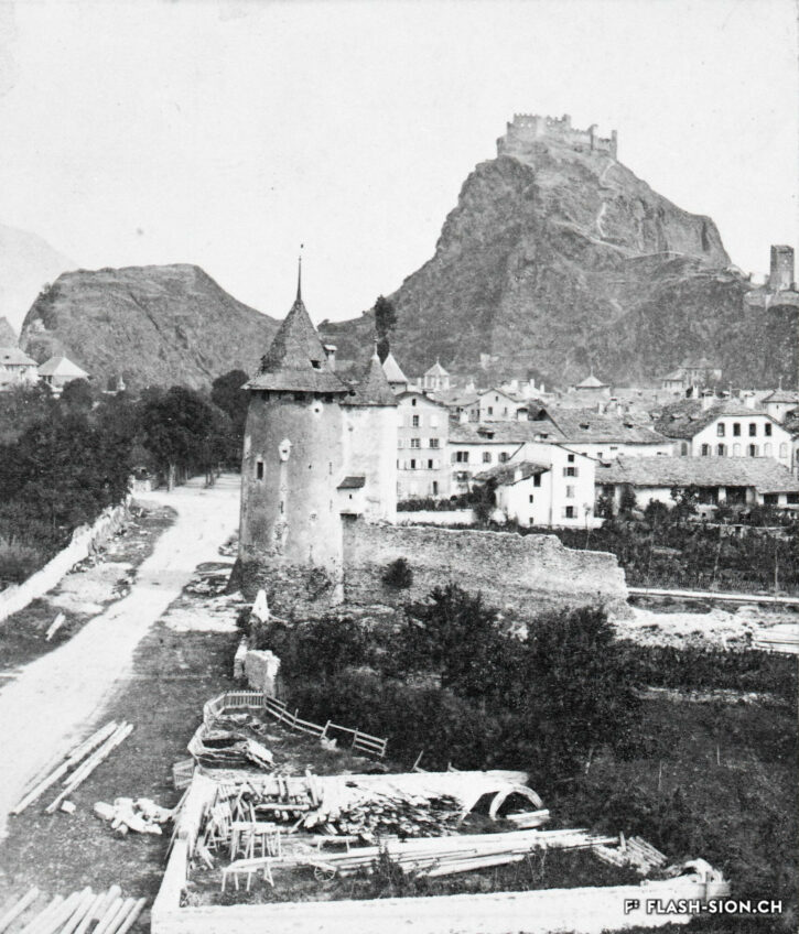 A partire dall’alto Medioevo è attestata la presenza di una cinta fortificata attorno alla città di Sion. Queste mura tracciano lo sviluppo della città fino alla fine del 15esimo secolo. La più grande e ultima cinta muraria smantellata nella prima metà del 19esimo secolo aveva 7 porte. Questi passaggi obbligati e ben sorvegliati simbolizzano sia la fuga e l’apertura al mondo che la chiusura e il ritiro in caso di guerra, permettendo di convogliare e controllare le persone e le merci, e di riscuotere tasse e pedaggi. Le vestigia della Porte de Covent, situata fra le colline di Valère et Tourbillon, costituiscono un’ultima testimonianza di un accesso alla città medievale.
