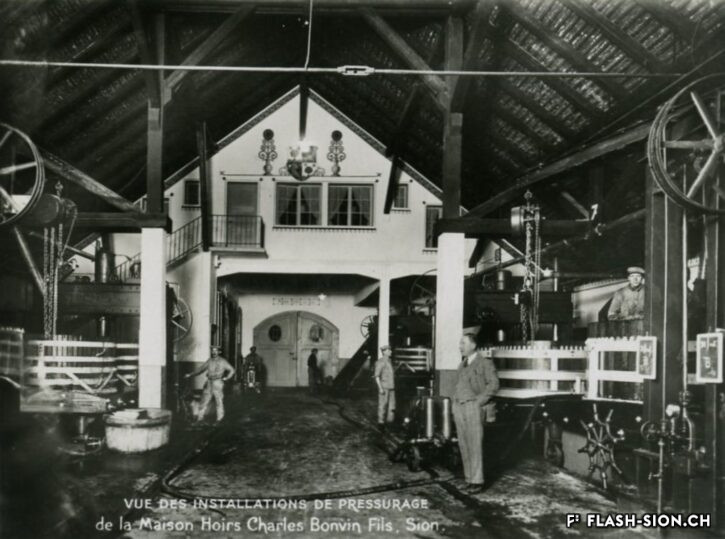 Fondata nel 1858, l’azienda sedunese Hoirs Charles Bonvin Fils, è una pioniera del commercio di vino nel Vallese. Charles-Marie Bonvin, il suo fondatore, diede impulso alla tenuta e fece conoscere i vini del Vallese al di fuori del cantone e della Svizzera. Il figlio Charles (1858-1922) prese il testimone e fu seguito dai suoi due figli, Charles (1888-1937) e Félix. Nel 1932, alle cantine e agli uffici nella Rue des Vergers e nella Rue des Remparts si aggiunsero i torchi di Avenue de Tourbillon, di fronte alla stazione. In seguito, fino all’inizio degli anni Novanta, si sono trasformati in un moderno centro di pressatura e cantina. In disuso da molti anni, questi torchi abbandonati hanno attirato l’attenzione di un gruppo che ha visto in essi un potenziale culturale e ha voluto riportarli in vita in modo temporaneo. Nel 2008 e per un anno, l’associazione “Les Caves à Charles” (Le cantine di Charles) ha riportato in vita questo luogo industriale ricco di storia, per rendergli un ultimo omaggio prima della sua demolizione.