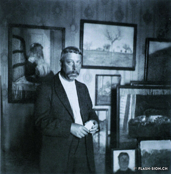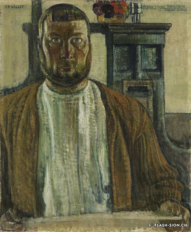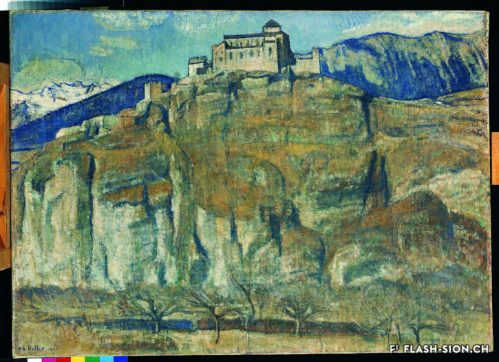 Edouard Vallet (1876-1929) fu un artista intimamente legato al Vallese. Dopo Hérémence, Savièse e Vercorin, questo pittore, incisore e disegnatore ginevrino s’interessò da vicino a Sion e finì per stabilirsi dal 1920 al 1925. Profondamente toccato dalla morte della sua prima moglie e indebolito dall’influenza spagnola, si consacrò alla sua arte con più determinazione che mai. Il suo arrivo a Sion segnò una svolta nel suo lavoro, questo periodo fu particolarmente prolifico. Ispirato dalla valle del Rodano e soprattutto dai castelli di Valère e di Tourbillon, Edouard Vallet creò una serie importante di paesaggi di Sion.