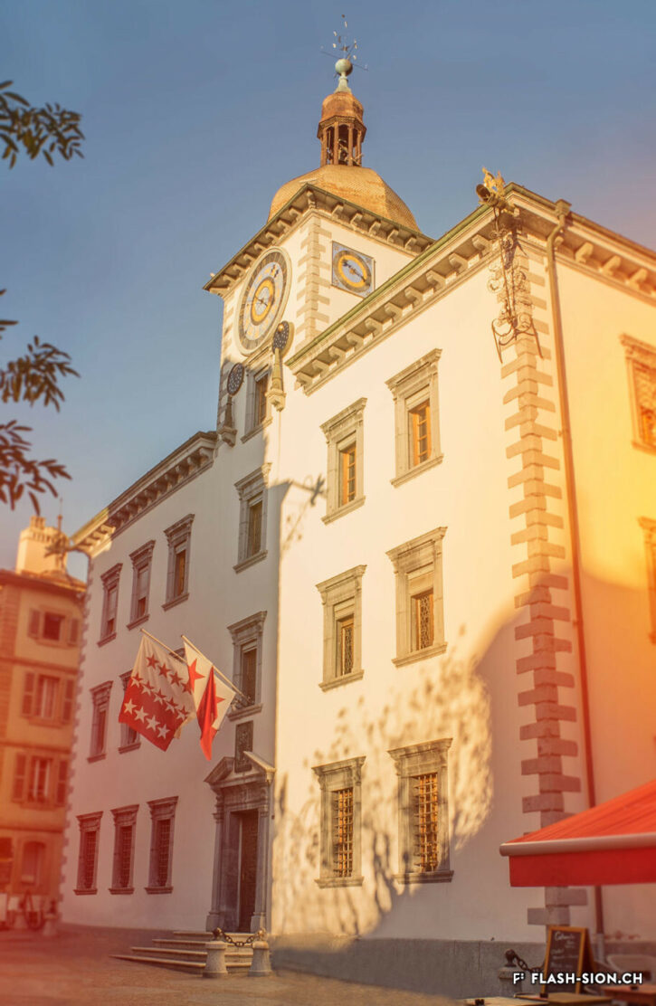 Die älteste bekannte christliche Inschrift nördlich der Alpen befindet sich in Sitten. Öffnet sich die reich geschnitzte Türe des Rathauses, entdeckt man an den Wänden der Eingangshalle verschiedene, gravierte Steinplatten. Die meisten darunter stammen aus der Römerzeit. Eine ganz spezielle Bedeutung kommt der Inschrift zu, die der römische Provinzstatthalter, Pontius Asklepiodotus, im Jahr 377 n.Chr. herstellen liess. Die Widmung zur Restaurierung eines Gebäudes durch den hohen Beamten trägt ein Christusmonogramm.