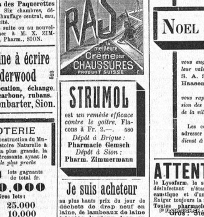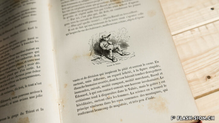 « Una città nera e brutta, popolata da cretini e persone con i gozzi pendenti », sembra essere ciò che veniva offerto ai viaggiatori di passaggio a Sion nel 18esimo secolo. Il dizionario ragionato di d’Alembert definisce i cretini come « una specie di uomini che si trovano in gran numero in Vallese e soprattutto a Sion». Le farmacie di Sion proponevano vari rimedi contro l’aumento sproporzionato del volume della ghiandola tiroide. Ma fu solo con l’introduzione del sale iodato nel 1924 che questo flagello scomparve. Il cliché « Cretini delle Alpi » invece, celebre insulto del capitano Haddock, resta tutt’oggi ancorato nella mente della gente.