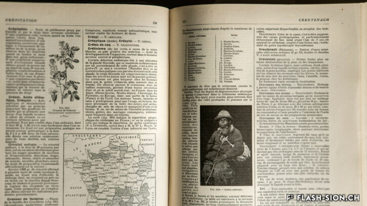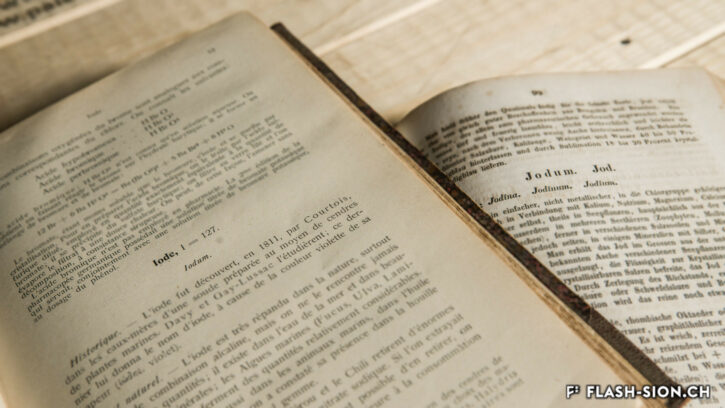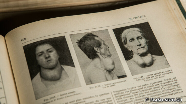 Travellers passing though Sion in the 18th century seemed to view the city as « black and ugly, full of idiots with dangling goitres». Alembert’s Reasoned Dictionary gave a definition of idiots as « a sort of man found in large numbers in Valais and especially in Sion ». Sion’s pharmacies provided various remedies for the growing volume of thyroid gland. But it was only after iodized salt had been introduced in Valais in 1924 that the problem was eradicated. However, the cliché of « Idiots of the Alps », which was also a famous Captain Haddock’s insult, has remained engrained in people’s minds to the present day.