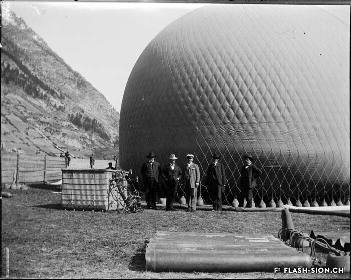 Der Ballonfahrtpionier Eduard Spelterini (1852-1931), mit bürgerlichem Namen Edouard Schweizer, erlangte mit der ersten Alpenüberquerung mit Start in Sitten Weltberühmtheit. Im Morgengrauen des 3. Oktobers 1898 ertönt auf dem von Schaulustigen gefüllten Plantaplatz ein «Leinen los» und der Ballon «WEGA» erhebt sich in die Lüfte. Der goldgelbe, von über 150 Sandsäcken am Boden gehaltene Ballon, legt eine Strecke von 232 km zurück und erreicht eine maximale Höhe von 6’300 Metern. Die qualitätsvollen Luftbilder, die der Ballonfahrer auf seinen verschiedenen Flügen aufnimmt, ermöglichte den Menschen erstmals, die Erde aus der Vogelperspektive zu betrachten. Sie stellen bis heute ein beeindruckendes Zeitzeugnis dar.