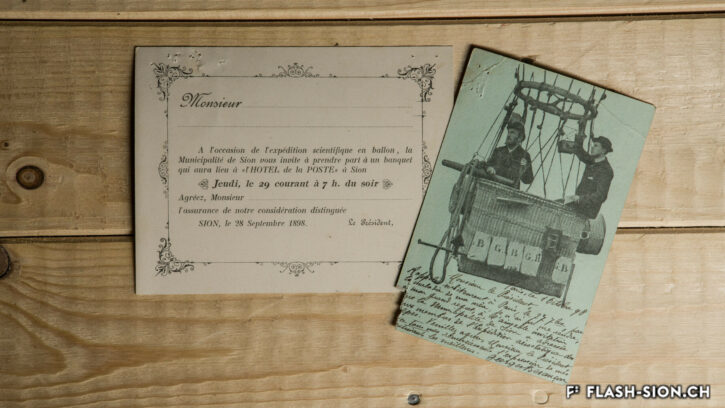Pioniere del volo, Eduard Spelterini (1852-1931), all’anagrafe Eduard Schweizer, si è fatto conoscere mondialmente con la sua prima traversata delle Alpi partendo da Sion. All’alba del 3 ottobre 1898, sulla piazza della Planta riempita di spettatori stupiti, al grido “mollate tutto” l’aerostato “WEGA” s’innalza nel cielo. Il pallone colore giallo oro, che era tenuto al suolo da più di cento sacchi di sabbia, percorrerà 232 km e raggiungerà l’altitudine massima di 6300 m. Le fotografie di qualità eccezionale scattate dall’aeronauta durante i suoi voli permisero alla gente di vedere per la prima volta la terra dal cielo. Ancora oggi queste foto costituiscono una testimonianza straordinaria della sua epoca.