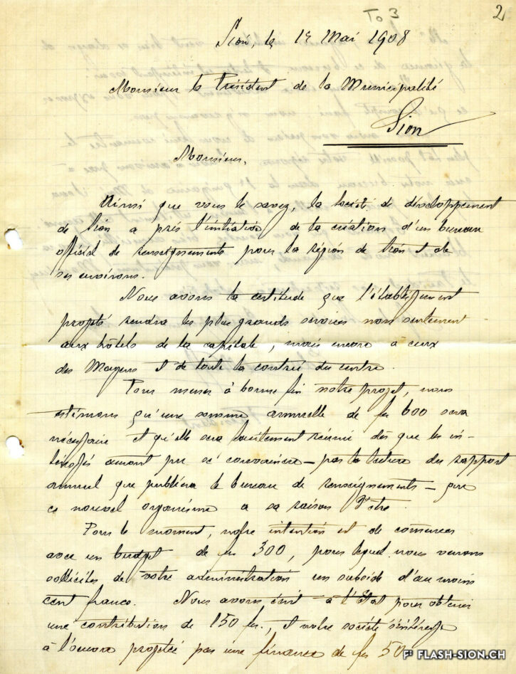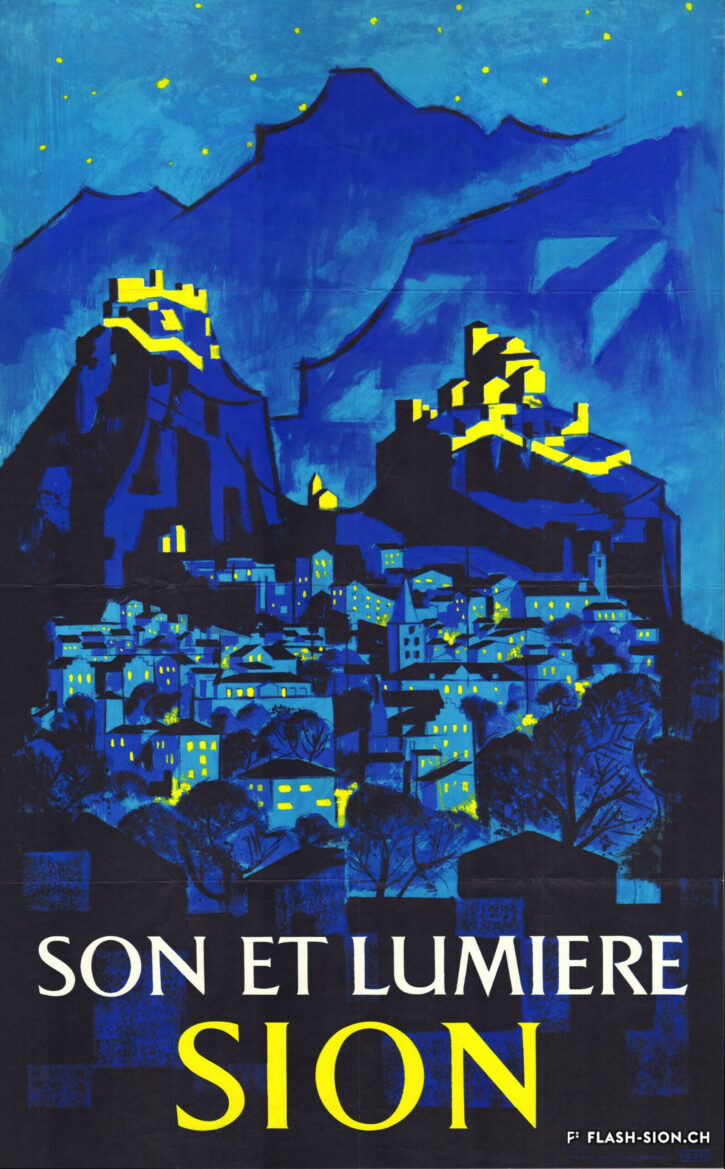 At the turn of the 20th century, travellers passing through Valais hardly made a stop in Sion, which didn’t seem to have much to offer. The Sion Development Society (1902), the Centre Tourist Association (1945) and the Tourist Information Office (1962) were created to promote the region of Sion. This was achieved through various projects such as Planta Public Garden, by putting forward historical monuments, particularly during shows such as “Sound and light”, by bidding for the Olympic Games and thanks to the proximity to ski resorts. Even though the means of promotion have evolved over time, some projects remain.